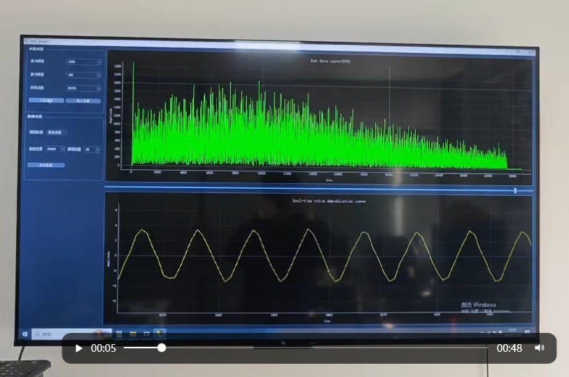 1、快速解調:能夠對40km長的光纜進行實時相位解調,從視頻上可以清晰看到V字形頻譜。