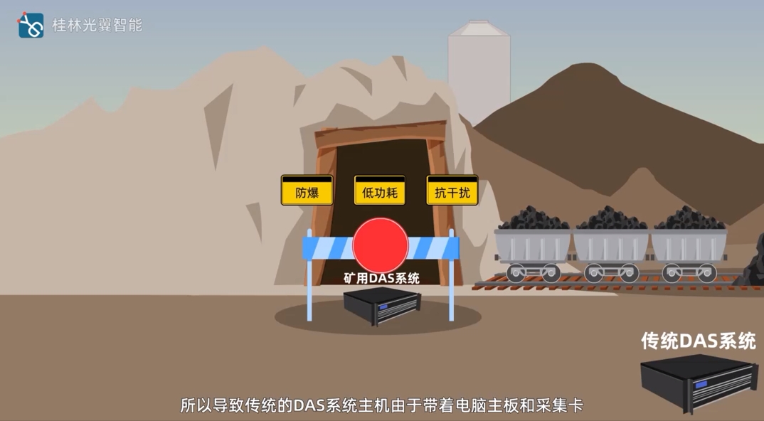 煤礦行業(yè)分布式光纖聲傳感DAS系統(tǒng)由位于井下的DAS邊緣模塊和井上的DAS采集主機2部分組成。相較于傳統(tǒng)的集中式DAS一體機方案,該方案有以下優(yōu)點: